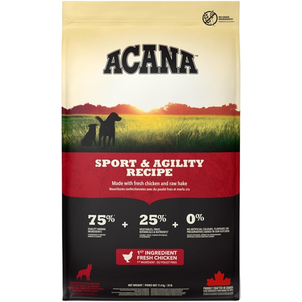 Vi har fundet Acana Sport Og Agility Recipe Kg fra Acana hos Hunde-foder.dk i kategorien Acana Hundefoder. Acana Senior Heritage med fjerkræ og fisk til meget aktive voksne hunde.Hundens alder: Voksne hundeHundens størrelse: Alle raser