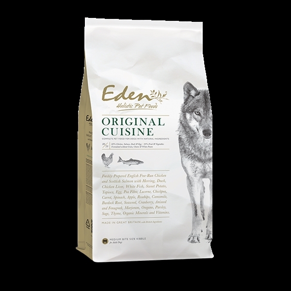 Vi har fundet Eden Dry Original Cuisine Medium Kg fra Eden hos Hunde-foder.dk i kategorien Eden Hundefoder. Et afbalanceret fuldfoder, højt i kvalitets protein og er fri for korn, gluten og hvide kartofler
