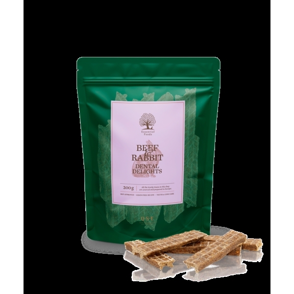 Vi har fundet Essential Grain Free Beef Rabbit Dental Delights fra Essential Foods hos Hunde-foder.dk i kategorien Godbidder. En godbid med tandbørste effekt til hvalpe og voksne hunde