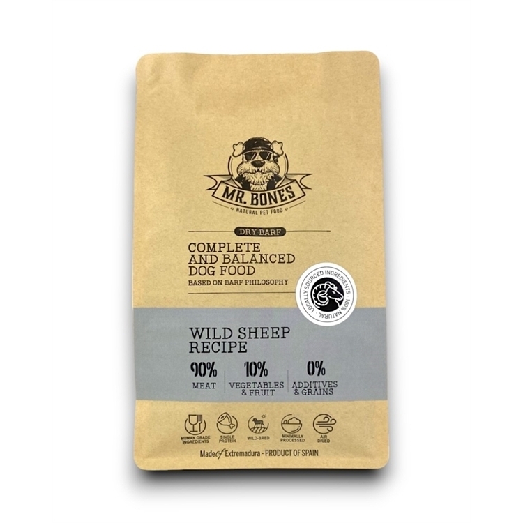 Vi har fundet Mr Bones Dry Barf Wild Sheep Recipe G fra Mr. Bones hos Hunde-foder.dk i kategorien Mr Bones Hundefoder. Spansk lufttørret frisk kød, kødben, næringsrigt organkød, frugt og grøntsager. Med 90% kød, 10% frugt og grøntsager og 0% tilsætningsstoffer og korn. Hentet fra lokale landmænd og producenter.