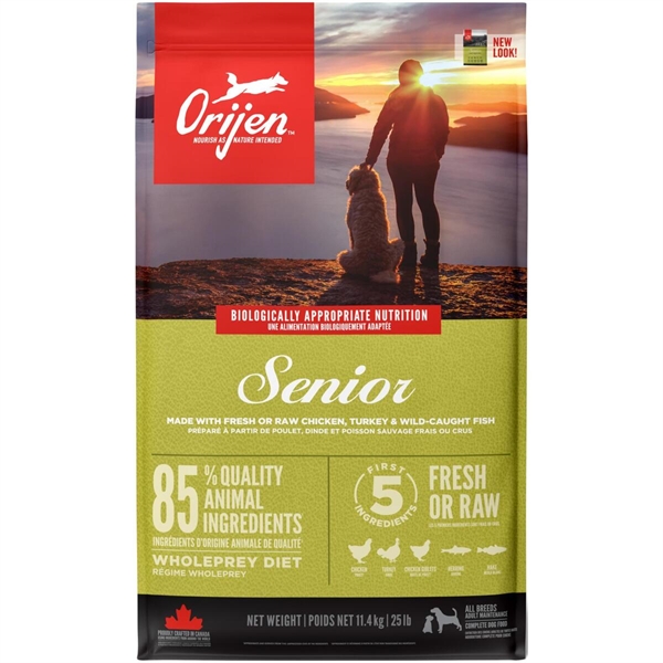 Vi har fundet Orijen Senior Hundefoder Kg fra Orijen hos Hunde-foder.dk i kategorien Orijen Hundefoder. Orijen Senior med fjerkræ og fisk til ældre hunde.Hundens alder: Ældre hundeHundens størrelse: Alle raser