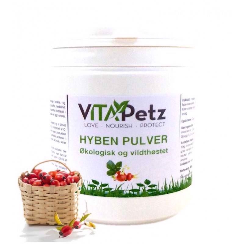 Vi har fundet Vitapetz Hyben Pulver G fra Vitapetz hos Hunde-foder.dk i kategorien Tilskud. Hyben har mange sundhedsmæssige fordele, og indeholder et væld af gode næringsstoffer.