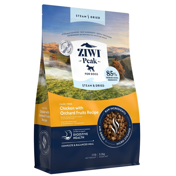 Vi har fundet Ziwipeak Dog Steam Dried Chicken Kg fra Ziwipeak hos Hunde-foder.dk i kategorien Ziwi Peak Hundefoder. NYHED FRA ZIWIPEAK! – 85 % premium microdampet og lufttørret råt kød og organer. Indeholder kyllingekød, indmad, samt knogler, brusk og frugt